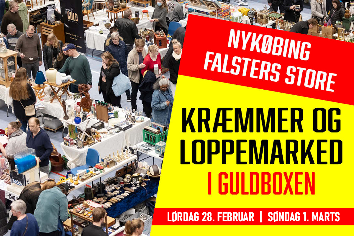 Nykøbing Falsters store kræmmer og loppemarked i GULDBOXEN I Nykøbing Falster den 28 februar- 1 marts 2026